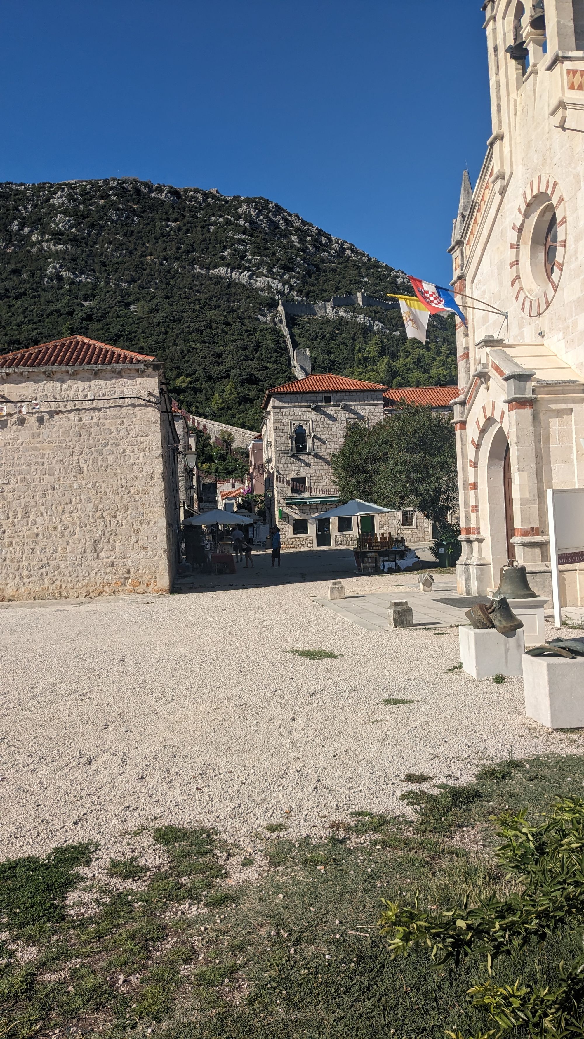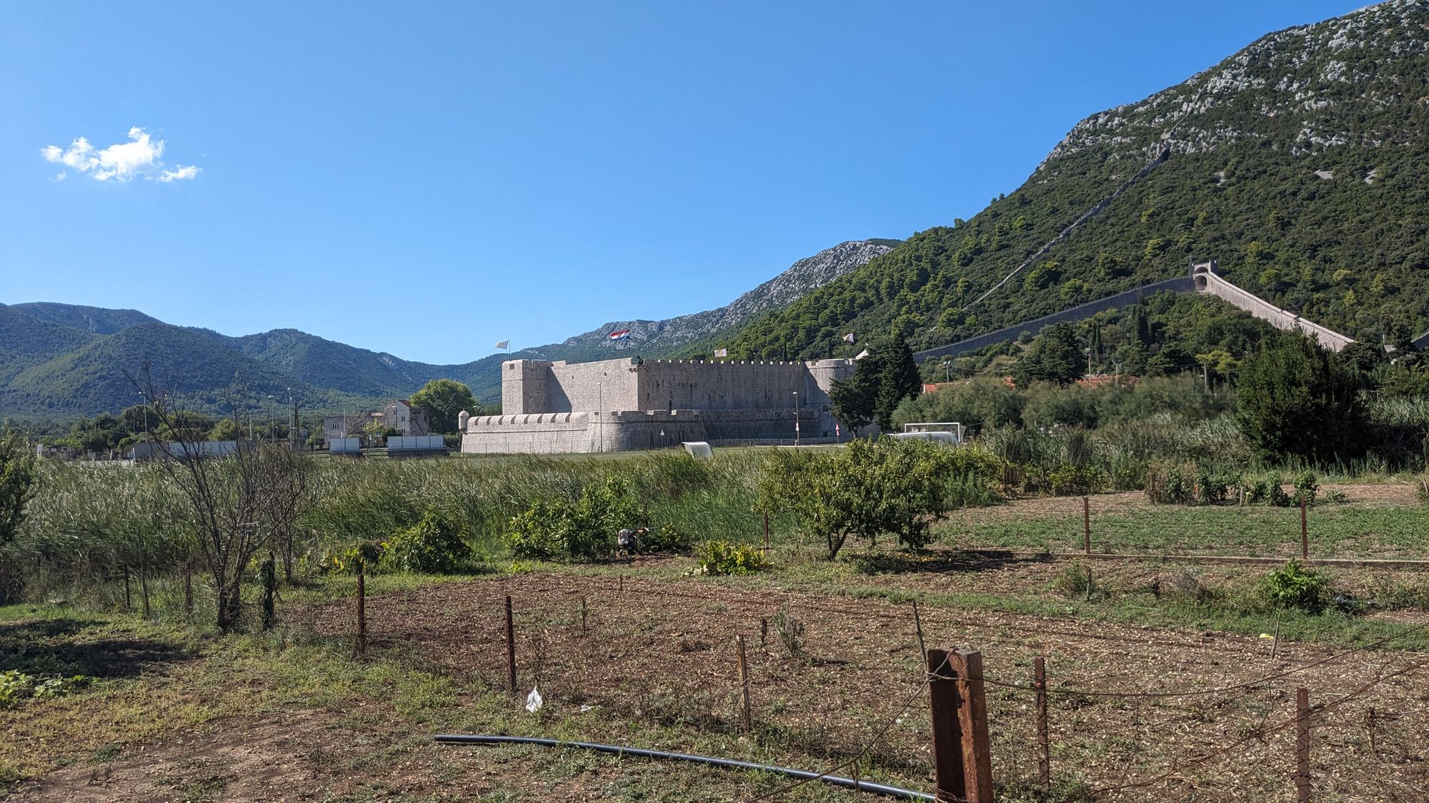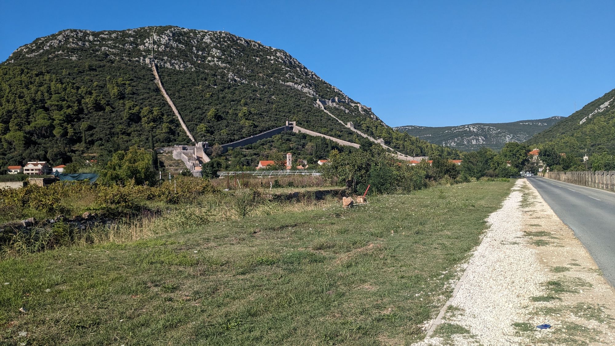 Auch war das Wetter perfekt - Sonne, aber nicht mehr als 28 Grad. Dadurch auch weniger Verdunstung und die Sicht war besser. Auch ist es Traumhaft die ganze Zeit in Ruhe die Kulisse zu genießen und dabei Rad fahren zu können! Das ganze wurde nur ein bisschen getrübt von meinem erst dritten Platten. Vorbei komme ich noch an dem süßem kleinen Ort Ston mit Burg und einer sehr langen Mauer. Der Ort hat mir schon vor 10 Jahren gefallen.